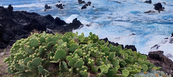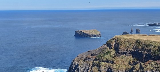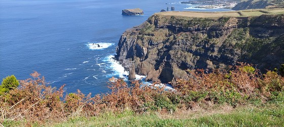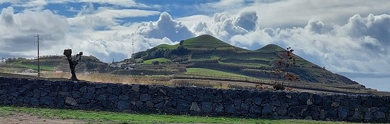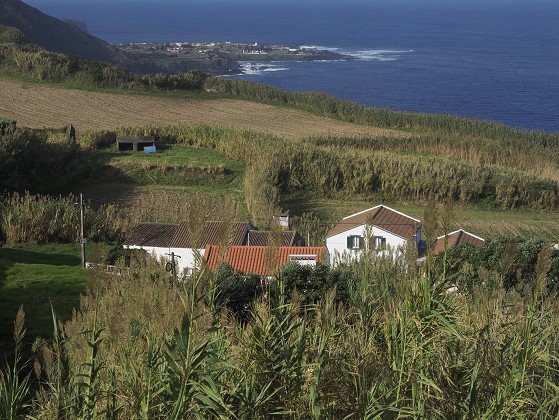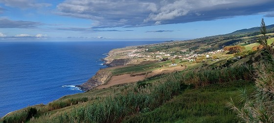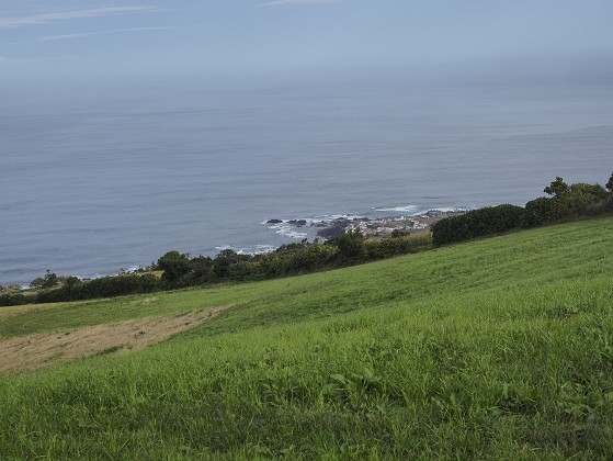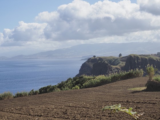 Voorbij Mosteiros gaat de rit rond de Pico de Mafra, ooit een vulkaan. Daarna komen we bij de noordkust van het eiland. Er is hier heel wat landbouw, vooral voer voor de koeien.