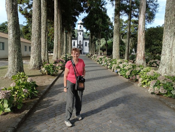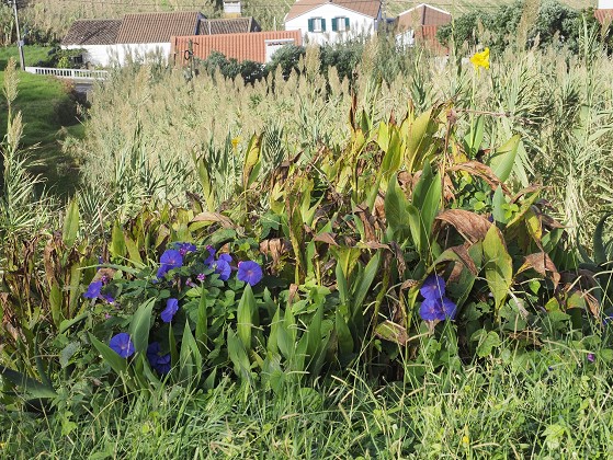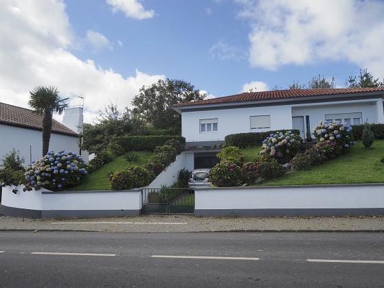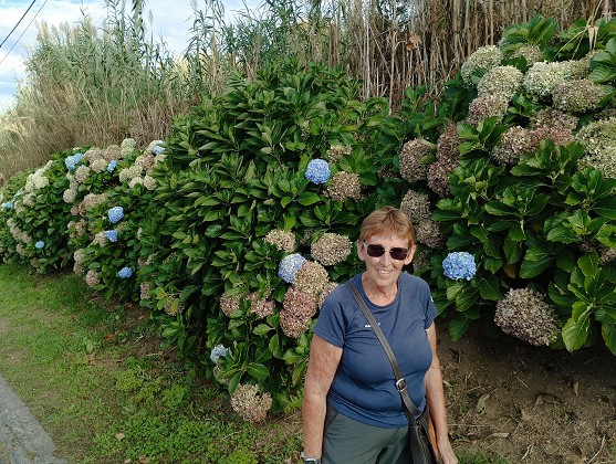 We nemen de afslag naar Feteiras. Onderweg zien we heel veel hortensia. Tijdens de bloeiperiode is het ganse eiland blauw gekleurd door de massa’s hortentia, die hier gewoon in het wild bloeien