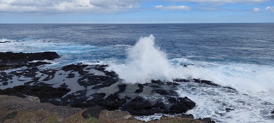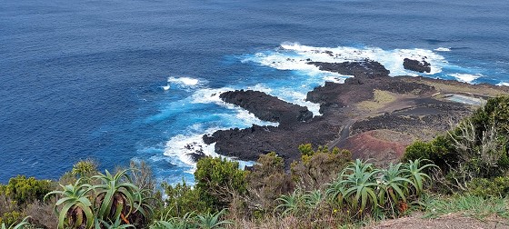 langs een kleine weg houden we even halt, hier hebben we uitzicht op een deeltje van de noordelijke kust. De rotsen bestaan uit gestold vulkaangesteente
