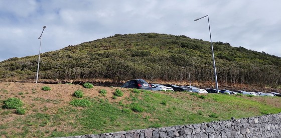 We rijden naar de andere attractie van Ginetes, Termas de Ferraria (warmwaterbaden). Bij een parking, nog een heel eind boven de zee, is er een verbod om nog verder te rijden, wegens werkzaamheden. Veel wandelaars gaan verder naar beneden of maken een moeilijke wandeling met steile klim en afdaling