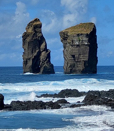 een klein eilandje en enkele basaltzuilen zijn ook nog resten van de oorspronkelijke vulkaanuitbarsting