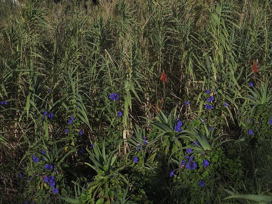 zoals overal hier in het westen is er welig groen, in het wild groeit suikerriet, blauwe winde woekert overal tussen….