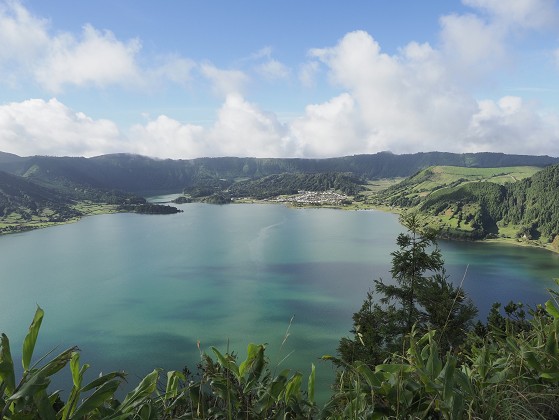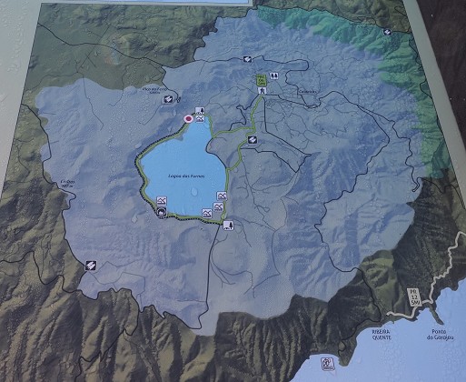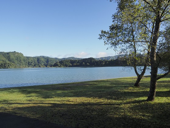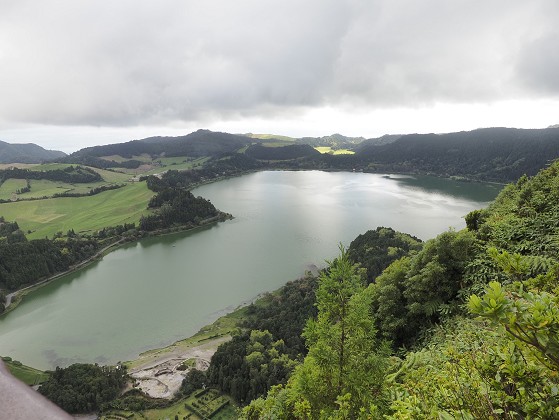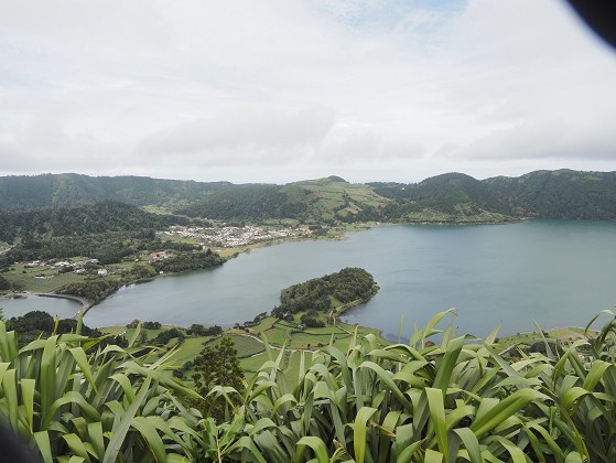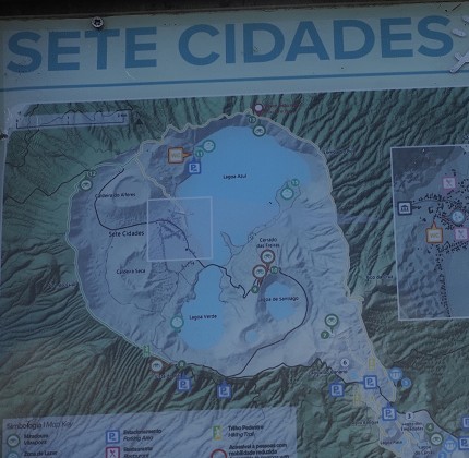 dit is het Lago Azul, het blauwe meer, het grootste van de meren hier. Op het einde ligt het dorpje Seta Cidades (zeven dorpen)