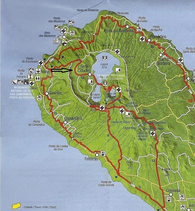 terug naar Ponta Delgada, de oversteek van noord naar zuid is minder dan 10 km. Uitzicht op het binnenland