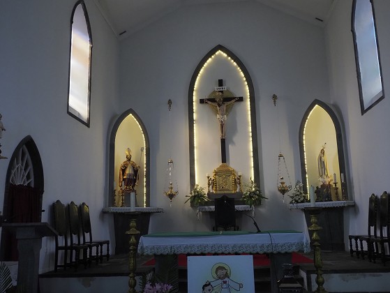 Feteiras is een erg rustig dorp, zeker op zondag. Hier de kerk