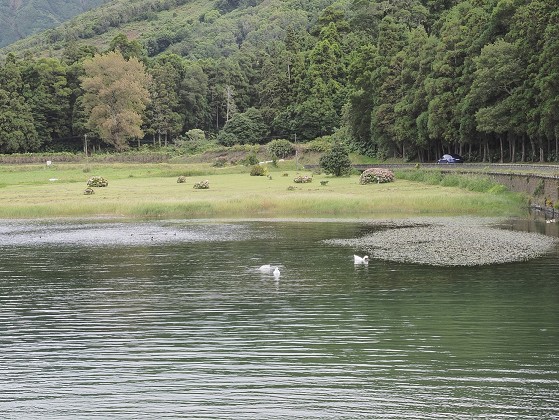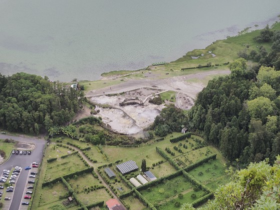 Het meer van Furnas kan na een langere wandeling vanuit het dorpje bereikt worden, wij rijden er heen omdat we zowel de noord- als de zuidzijde bezoeken, en nadien enkele uitzichtpunten.