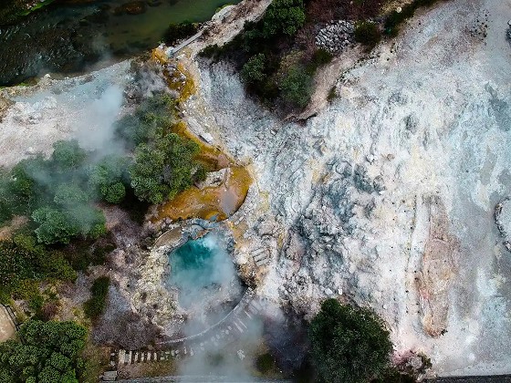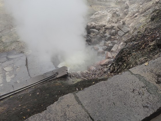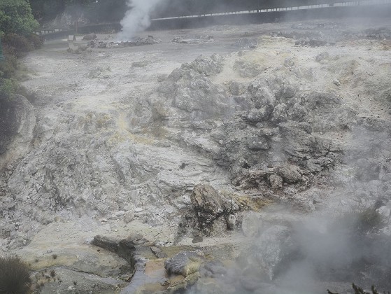 Er zijn enkele houten wandelbruggen om dichter bij de fumarolen te komen