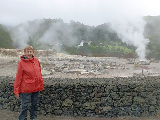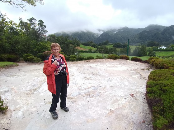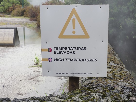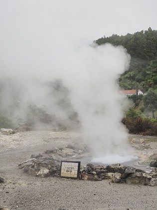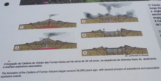 op een bord wordt nog een uitgelegd hoe de Furnas vulkaan werkte, in het museum hoorden we dat er nog steeds de mogelijkheid bestaat dat ze opnieuw uitbarst. Door de universiteit in Ponta Delgada wordt de intensie van aardbevingen (die hier regelmatig plaats vinden) en andere gegevens continu bijgehouden en geanalyseerd