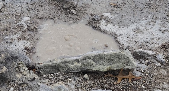 in de kokende modder kunnen ook micro-organismen overleven, bij een temperatuur van ongeveer 90° C en bij een erg zure pH 3. Hier leven oerbacteriën, voorlopers van de microben, zij zijn de organismen die zuurstof produceerden (en produceren) waardoor andere microben (en later ook andere levende wezens) op aarde zijn ontstaan