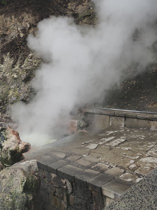 zelfs aan de rand van het meer zijn er hete dampen. Er mag niet gezwommen worden in het meer, in de buurt zijn enkel thermaal baden