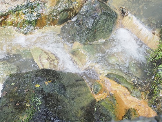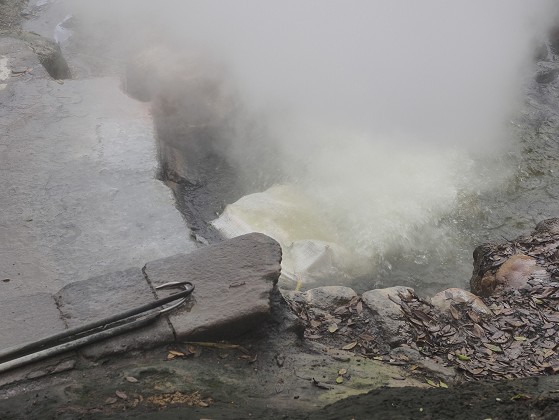 hier geen kokende poel of hete dampen, water borrelt hier bij een ietwat lagere temperatuur