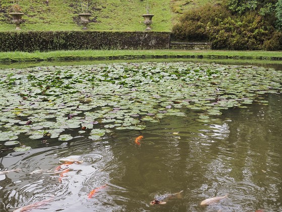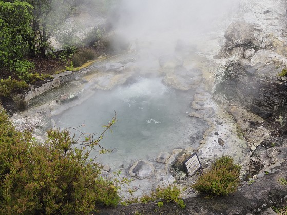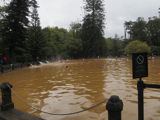 Wat verder bevindt zich het Parque Terra Nostra. Een kleiner park werd in 1780 als een soort lusttuin door een rijke Amerikaan gestart. Later werd het verkocht, verloederde het en in 1935 werd het gekocht door een familie die op een naburige grond het hotel Terra Nostra had gebouwd. Zij hebben meermaals het park gerestaureerd en uiteindelijk ook groter gemaakt tot 12,5 ha. In het park bevindt zich een thermaal bad waar continu water van ongeveer 30°C wordt toegevoerd. Het water is erg bruin doordat het ijzeroxides bevat. Waar wij overnachten worden blauwe handdoeken voorzien. Witte handdoeken kan men nooit meer wit wassen na een bezoek aan dit thermaal bad.