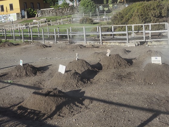 Hier zijn heel wat holen, gebetonneerde kookketels waar restaurants hun voedsel in zakken laten afdalen. Er wordt een deksel, ook al in beton op geplaatst en nadien wordt er een ijzeren netwerk op geplaatst en aangevuld met grond. Daarboven komt een bordje met de naam van het restaurant.