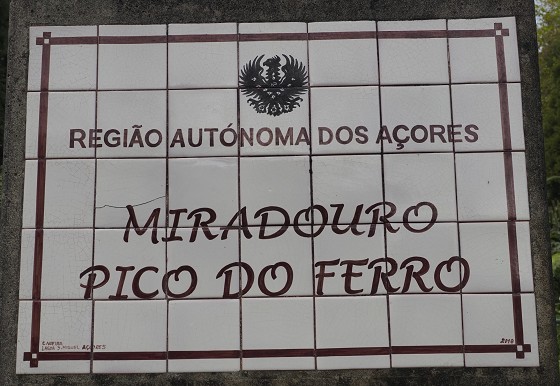 Het uitzichtpunt ligt op een hoogte van 524m, we kijken uit boven Sete Cidades en enkele meren. Ze liggen in een ingestorte krater, bijna 300m lager dan het uitzichtpunt.