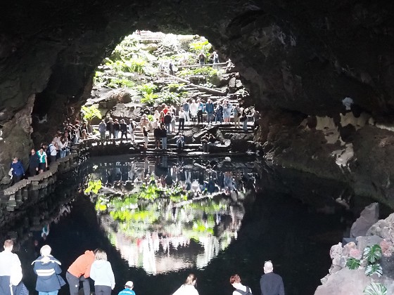 Nu zijn Jameos de los Aguas een toeristische trekpleister, we horen Spaans, veel Frans, Italiaans en wat Duits en Engels. Men kan online een ticket kopen, wij hebben echter tijd genoeg om een minder goede (weer)dag af te wachten.