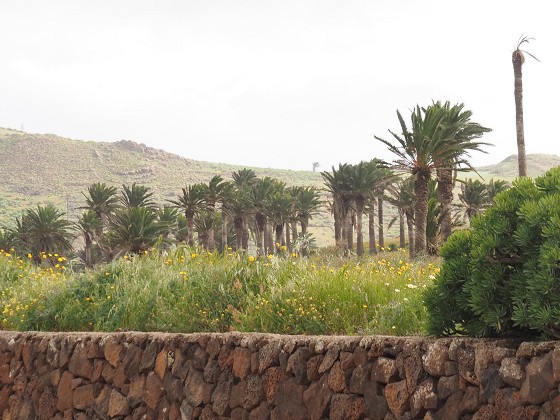 Vandaag is de wind nog heviger, op de meteo zien we dat er ‘Calima’ is, hevige wind die Saharastof meebrengt. Wanneer het regent en nadien weer opdroogt ligt er op de auto stof, crèmekleurig.