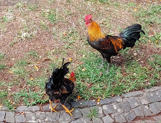 net zoals in de andere tuinen in Ponta Delgada, lopen hier ook (kemp)hanen rond