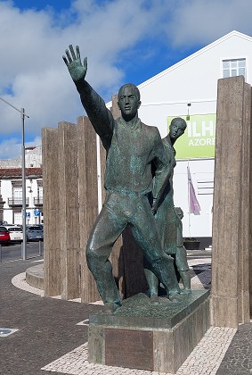 niet ver van de zee, een monument voor de emigranten, vele inwoners hebben betere oorden opgezocht om de armoede van de Azoren te ontvluchten …