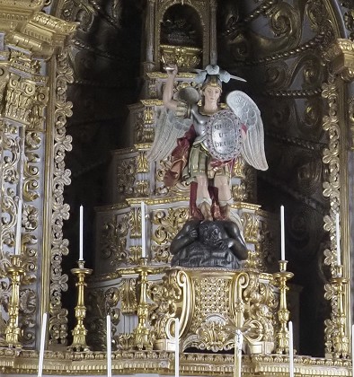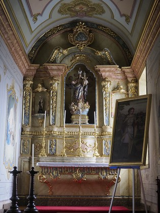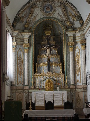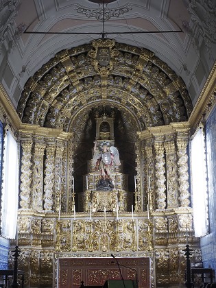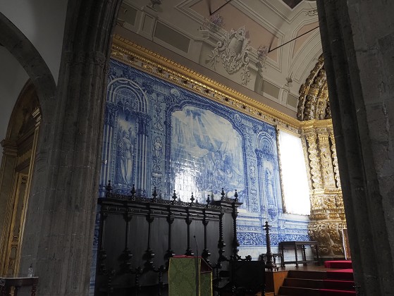 de wanden naar het hoofdaltaar zijn aan beide zijden versierd met azulejos, tegels in blauw-wit