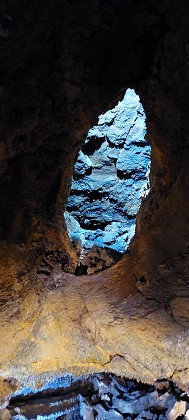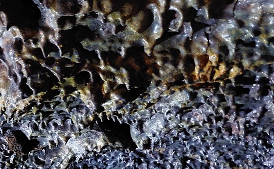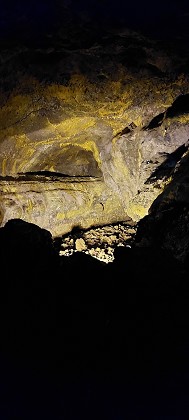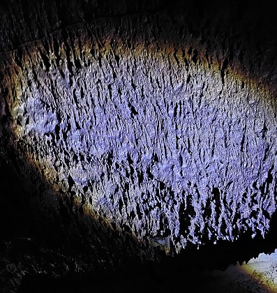 het plafond is evenmin glad, het vertoont kleine uitsteeksel die de richting tonen waarin de vloeibare lava stroomde (natuurlijk van boven naar beneden, richting zee)