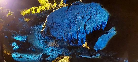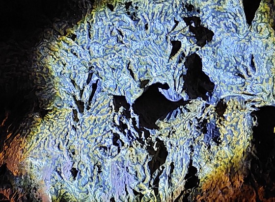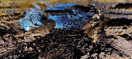 op de wanden zijn hier en daar bacteriënkolonies te zien, ze zijn er gekomen door de ademhaling van bezoekers. Dieper in tunnels, waar enkel wetenschappers komen, zijn endemische bacteriënsoorten ontdekt, meestal ook van het type Archaea, uitleg daarvan kregen we in het microbiologisch centrum in Furnas.