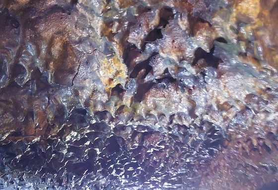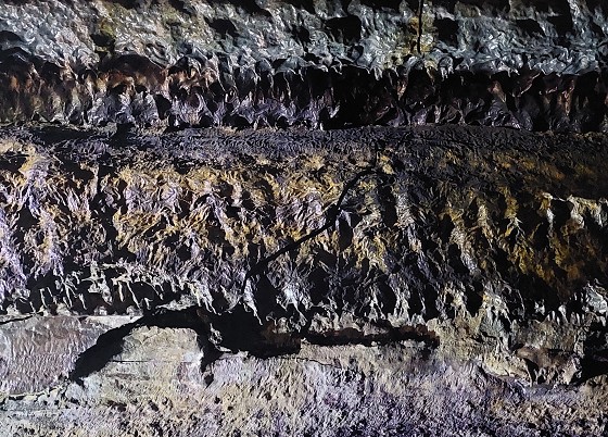 in een ander deel van de tunnel (enkel meter van de voorgaande) zijn weer andere structuren in de wanden te zien