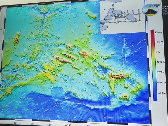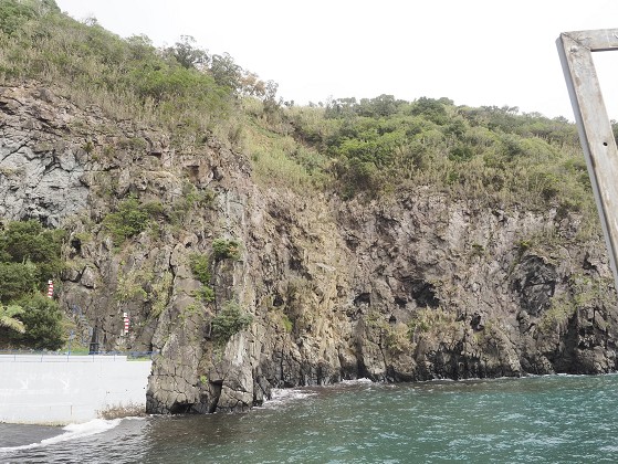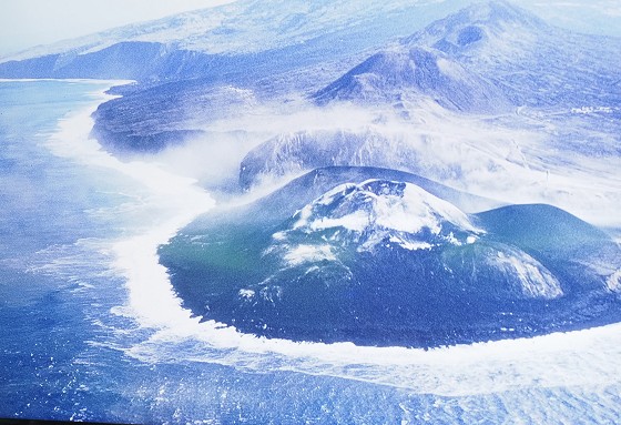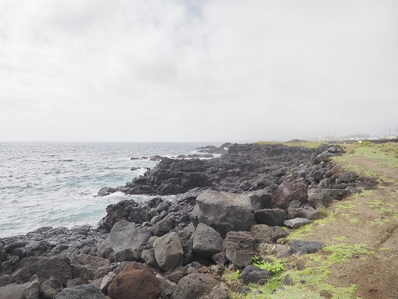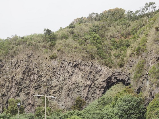 ongeveer 10.000 jaar geleden was hier in de buurt een vulkaanuitbarsting, de vulkaan opende richting zee en de lava vloeide (traag) naar beneden, richting zee dus