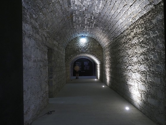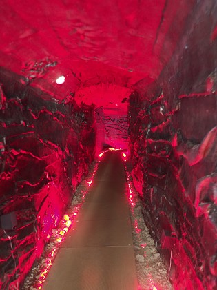 in een eerste tunnel zien we boven, door een opening in het dak van de tunnel, nog een tweede, minder hoge tunnel