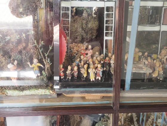 Nadien volgen we de ‘winkelstraten’. Ongelooflijk wat die man verzamelt heeft op zijn eentje, gebouwd en geïnstalleerd heeft. Hij financierde ook alles zelf.