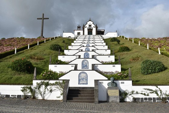 De kapel Ermida Nuestra Senhora da Paz, Onze-Lieve-Vrouw van de Vrede, wordt bereikt via een barokke trap. De treden zijn degelijk, breed en zoals overal, uit basalt gemaakt.