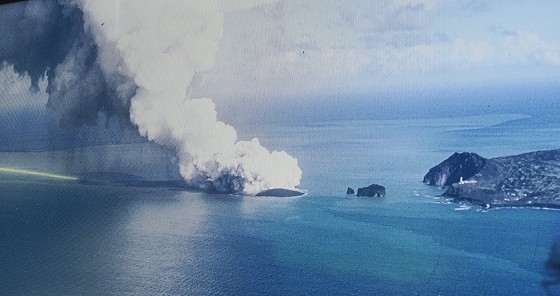 Wanneer lava in contact komt met zeewater, stolt ze direct van vergroot ze het landoppervlak