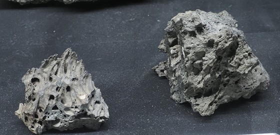 bijna terug boven in het gebouw, is er nog een kleine tentoonstelling met enkele verschillende types vulkanisch gesteente